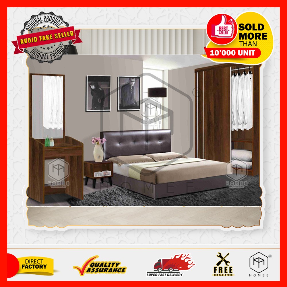 Homeehomee Luz Brown 5 In 1 Bedroom Set 4 X 6ft Wardrobe Limited Special Offer Shopee Malaysia
